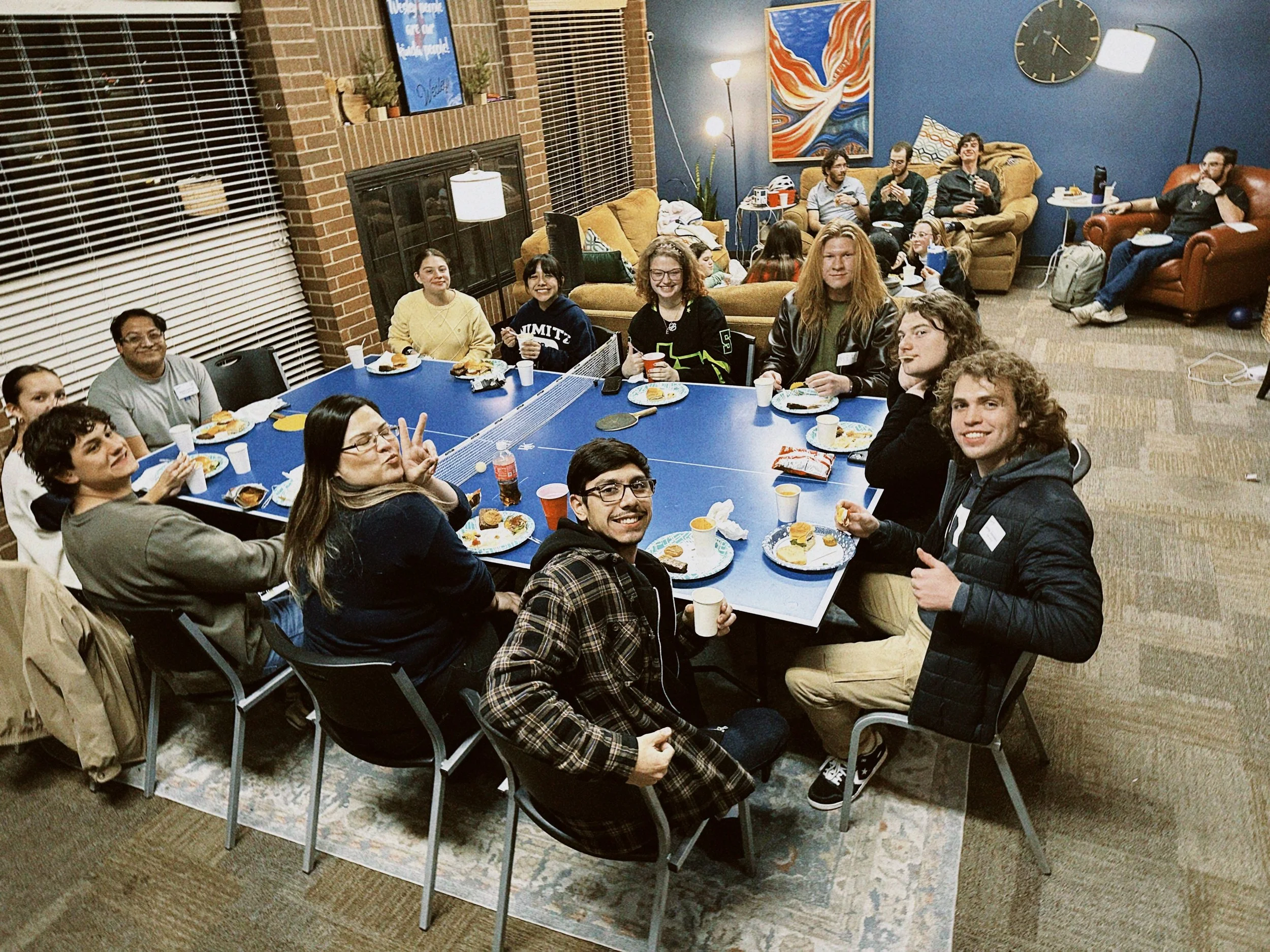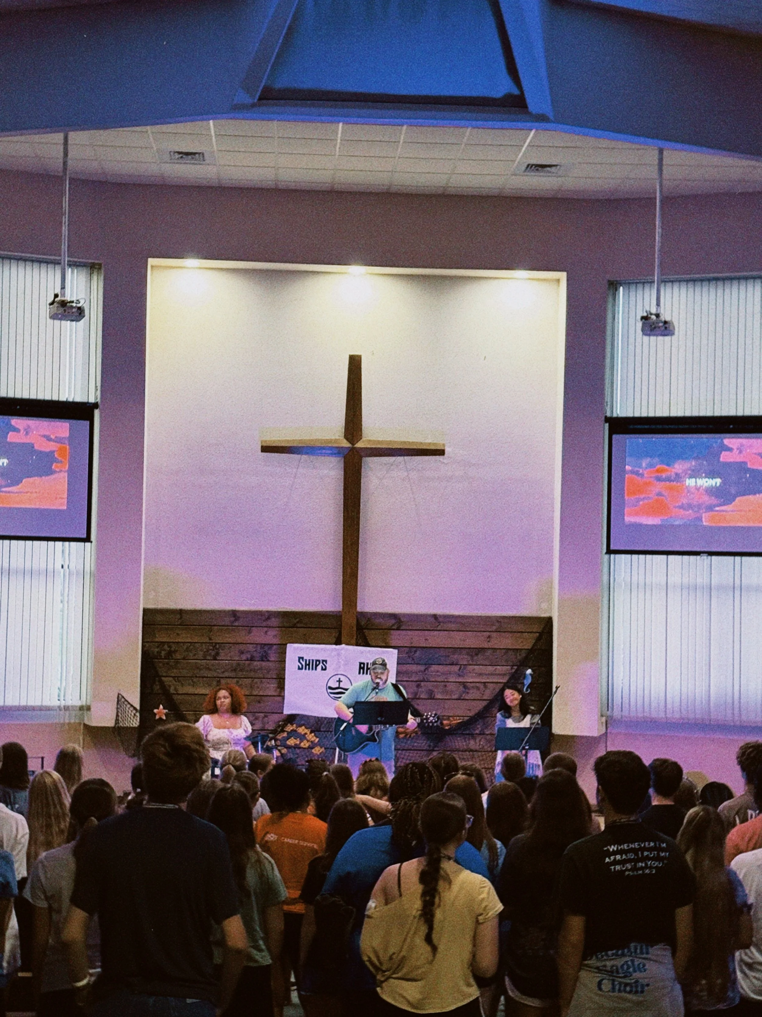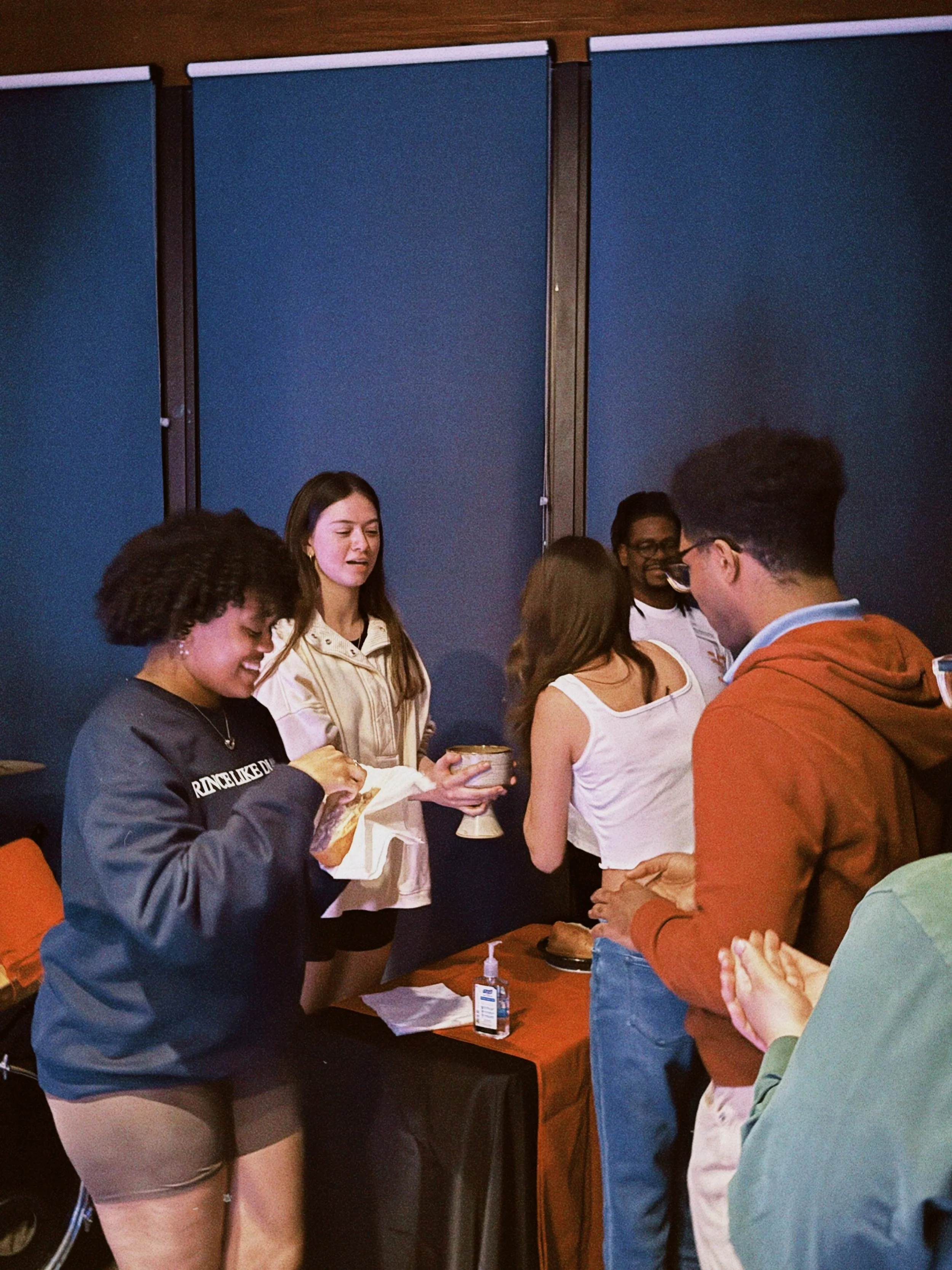 Each Tuesday through the Fall and Spring semesters, we gather to spend an evening of worship together. Local churches provide a free meal for us at 6pm. At 7pm, we begin an hour-long service of worship, a sermon, and a time to receive prayer and communion.